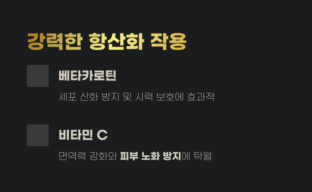 베타카로틴과 비타민 C의 강력한 항산화 작용