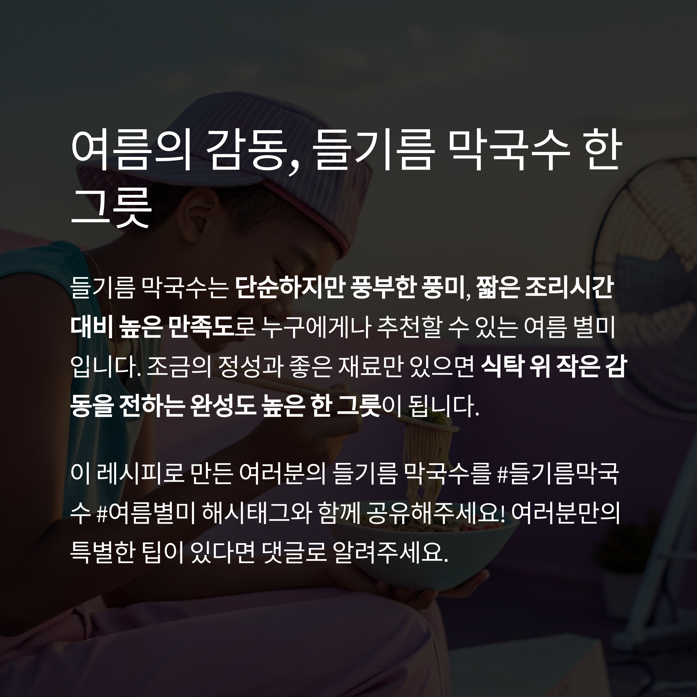 더운 날씨에도 부담 없이 먹을 수 있는 여름철 궁극의 한 끼로 사랑받습니다