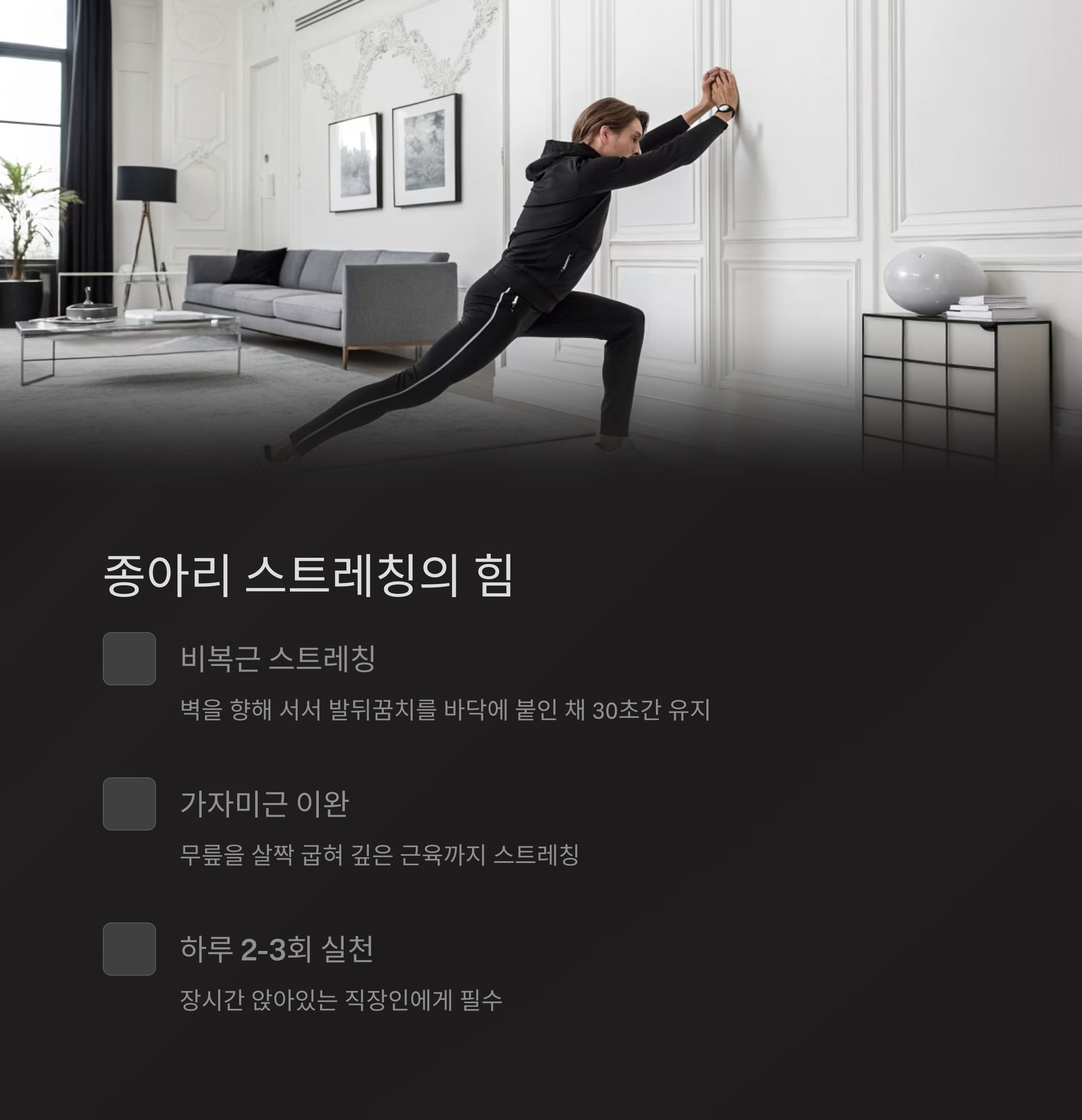 종아리 근육(비복근과 가자미근)을 겨냥한 스트레칭은