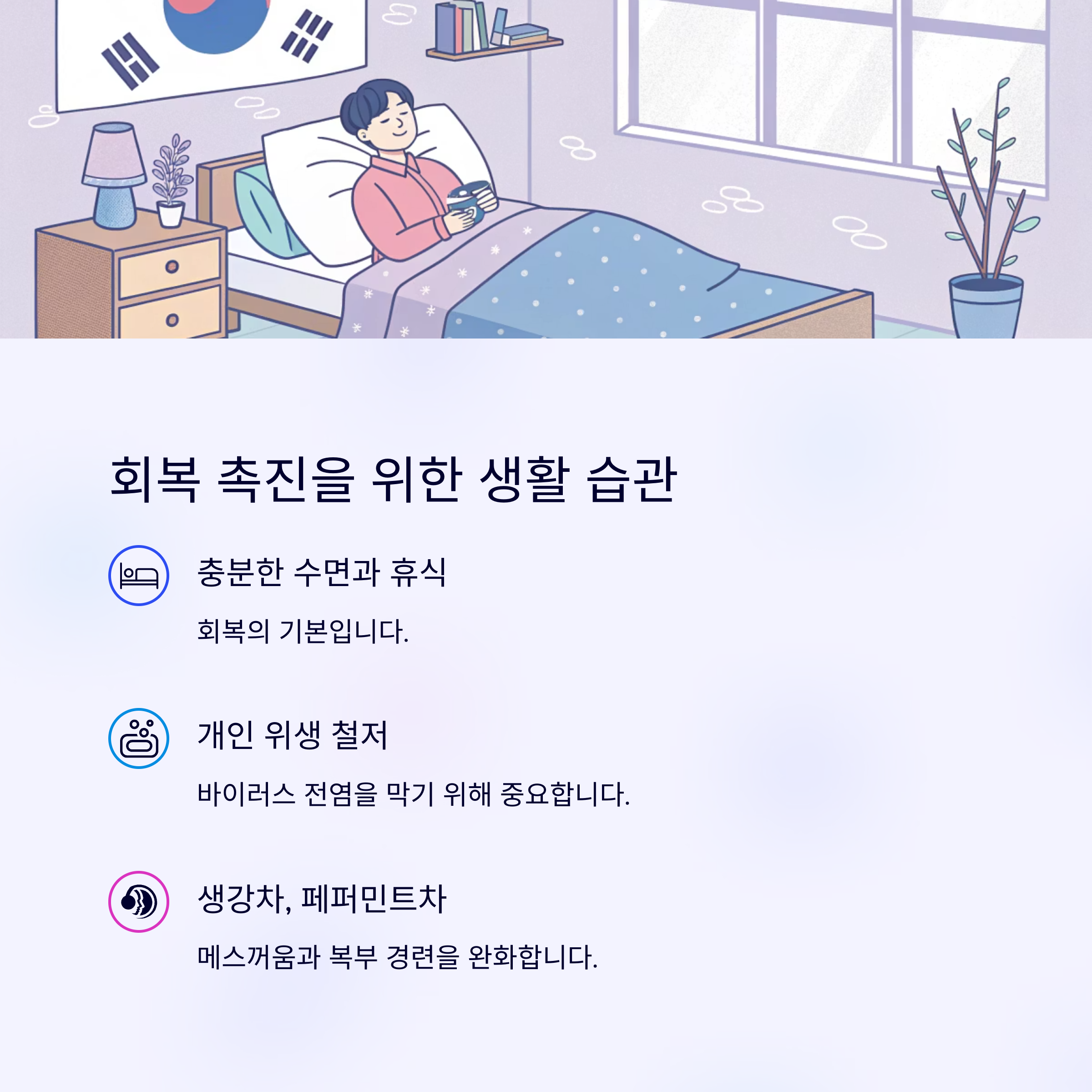 충분한 수면과 휴식은 장염 회복의 기본입니다.