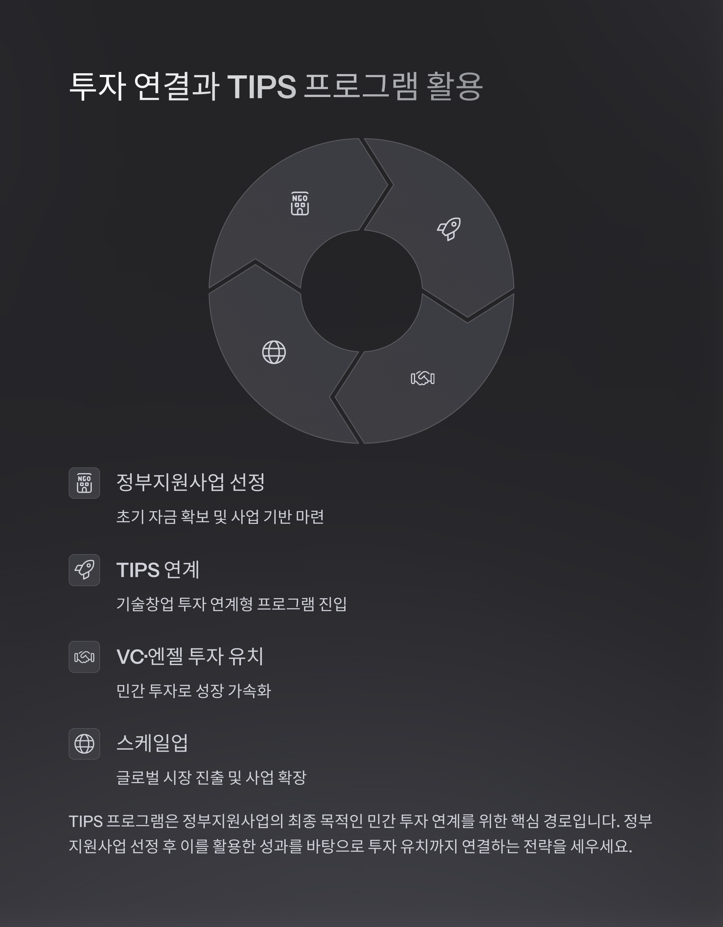 TIPS 연계, VC·엔젤 투자사 연결 등은 정부가 의도하는 최종 목적이기도 합니다
