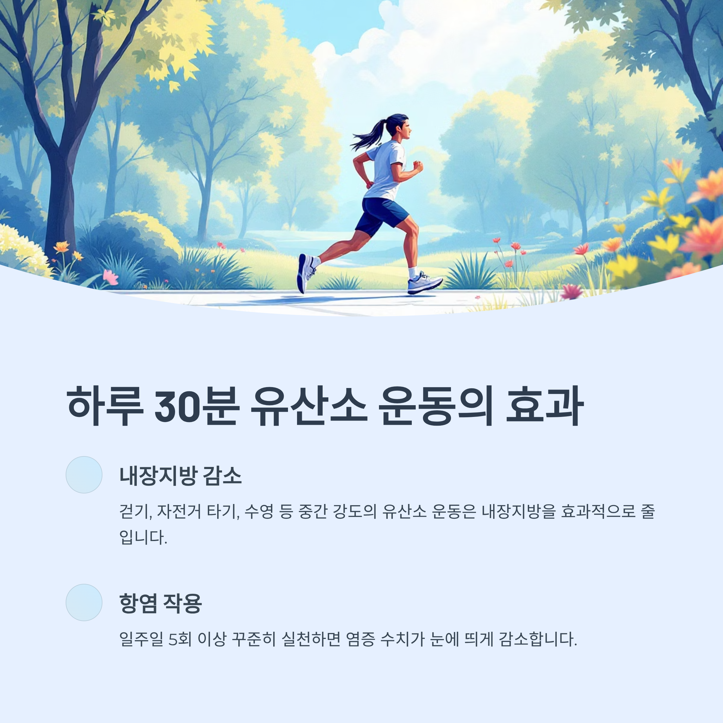 항염 작용을 하며 면역력도 높여줍니다. 하루 30분, 일주일 5회 이상